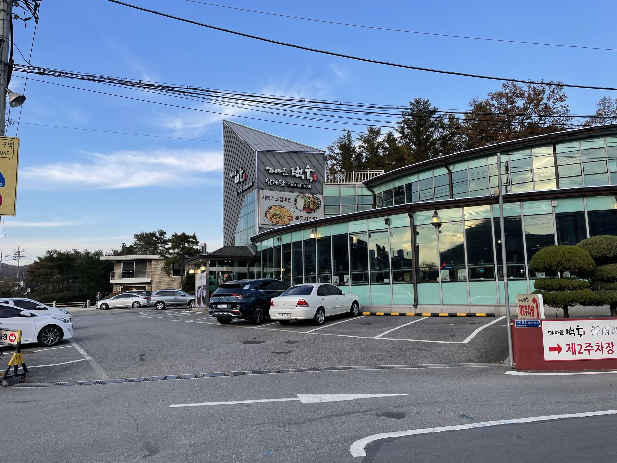 주차장은 충분하다, 정면에 있으며 우회전으로 10미터만 올라가도 정면의 두배는 되는 주차장이 또 있다.